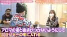 須田が「PRして!どういう風に使うと良いか」と質問すると、クロちゃんは「だーすーはブラジャー着けてますか?」「ティッシュにシュッシュってして、たたんで、アロマの液と皮膚がつかないようにしてブラジャーの中に入れる」とオススメ。「入れてみる?ブラに」と言われ、須田はすんなりとブラジャーの中にティッシュを入れた。加藤は「入れるんだ」と意表を突かれた様子だった。
