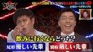 決勝戦のお題は『飲みに行くならどっち? 厳しい先輩? 優しい先輩?』。優しい先輩の立場の尾形は、「優しい先輩に決まってんだろ!一緒に居て楽しいからね」と主張。一方、厳しい先輩の立場の別府は、「厳しい先輩の方が色んなことを吸収できる」とした。討論は続き、尾形は「厳しい先輩は厳しいだけ。(優しい先輩は)優しさの中に厳しさもあるから」と持論を展開すると、別府は笑顔で「だから厳しい先輩の方がいいっすよね?」と返答。尾形は少しフリーズした後、「優しさの中の厳しさってある」と再度発言すると、別府はまたも「だから厳しい先輩の方がいいっすよね?」と笑顔で対応。この別府のリアクションに尾形は「もうれこれいいわ」と呆れ顔で話題を投げ捨てた。
