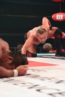 そして試合時間が20分をすぎると、田中がスーパーフライや各種のスライディングDを完璧に決め、中嶋が強烈な蹴りからヴァーティカルスパイクを決めるなど、お互いのフィニッシャーを成功させるが、両者ともにカウント3直前でキックアウト。意地でもフォールは許さない。