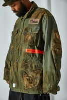 岡山の一流職人の手によって再構築された M-65 ジャケット・つば付きニットCAP をはじめ、 鮮やかな光沢感が印象的なベロアのセットアップ、アルバムジャケットを全面にプリントしたカットソーなど、APPLEBUM流にアップデートして表現したコラボコレクションとなっている。