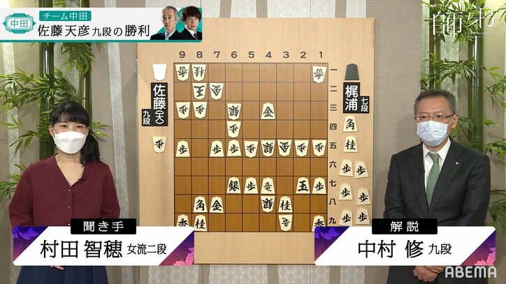 ベテラン棋士も「わからない!」と投了 超早指し戦“詰むや詰まざるや”の緊迫感が半端ない/将棋・ABEMA師弟トーナメント 将棋 2022/01/31 09:14 拡大する 数秒単位で繰り広げられる詰むや詰まざるやの攻防は、対局者だけでなく観戦している棋士にとってもスリリングで難解だ。「第1回ABEMA師弟トーナメント」予選Bリーグ1位決定戦、チーム鈴木とチーム中田の対戦が1月29日に放送されたが、この第1局でチーム鈴木の梶浦宏孝七段(26)と、チーム中田・佐藤天彦九段(34)が激闘を繰り広げたことで、解説を務めていた中村修九段(59)が「いやー、意味がわからない」とパニックに。この様子にファンも同じく興奮することになった。 続きを読む