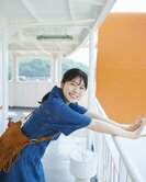 今回公開されたのは、夏の瀬戸内と冬の青森の二か所で撮影されたカットのうち、尾道の商店街を散歩しながら撮影された一枚。オーバーオールにツインテール、そして超笑顔の丹生ちゃんらしさあふれる。道端で見つけたガチャガチャでゲットした、すずめのフィギュアの真似をした敬礼ポーズをしている。