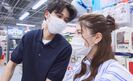 この日、新居に必要なものを買うために家電量販店を訪れた2人。寄り添いながらエスカレーターから上がってくる姿は、本物の新婚カップルのようだ。
