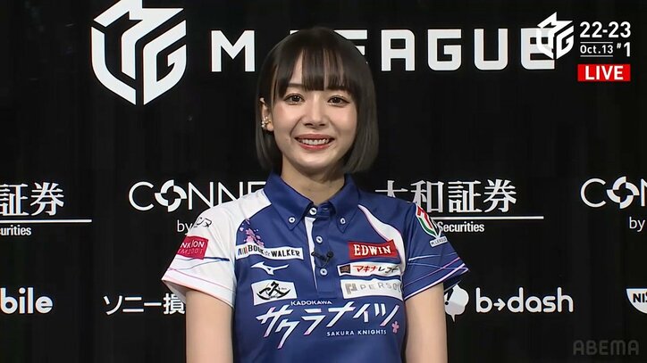 昨シーズンより3カ月も早い!美人雀士の“満開スマイル”に視聴者も祝福ラッシュ「おめでとー!!!」「オカピ、ナイストップ!!」/麻雀・Mリーグ Mリーグ 2022/10/14 09:20 拡大する 今年はファンを待たせない。プロ麻雀リーグ「大和証券Mリーグ2022-23」第1試合、KADOKAWAサクラナイツ・岡田紗佳(連盟)がトップを獲得。昨期は初トップまで長く、唯一の越年という憂き目を味わった美人雀士に、試合後は視聴者から祝福の声が多数寄せられた。【映像】勝利者インタビューで笑顔が弾ける岡田紗佳 岡田はこの日、中盤にトップ争いに加わると、南3局の親では決定打となる跳満をツモり逆転勝利。勝利者インタビューでは「嬉しいです」と“満開スマイル”、これに視聴者からは「うれしいです!」「おめでとー!!!」「オカピ、ナイストップ!!」「岡田の豪快な笑い方いいね」「初勝利が早かった」と祝福コメントが殺到した。 続きを読む