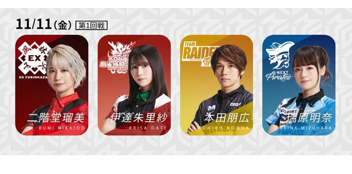 11月11日は「トップの日」?好調選手4人が集ってバチバチ対決/麻雀・Mリーグ Mリーグ 2022/11/11 15:07 拡大する Mリーグ機構は「大和証券Mリーグ2022-23」11月11日の第1試合に出場する4選手を発表した。この試合には今期の個人成績がプラスと好調な4人が集結。自分のため、チームのため「1」が4つ並んだこの日に、気持ちのいいトップを取るのは誰だ。【中継】大和証券 Mリーグ 風林火山vs麻雀格闘倶楽部vs雷電vsPirates 4人の中で最も成績がいいのは、KONAMI麻雀格闘倶楽部・伊達朱里紗(連盟)。開幕日にいきなり役満・四暗刻をアガるなど、昨期のデビューイヤーに負けないインパクトを出している。高打点が目立つこともあるが、引くと決めたらスパッと諦める決断のよさが光る。その分、無筋を打ち抜いてきた時には、対戦者の間にも緊張が走る。 続きを読む