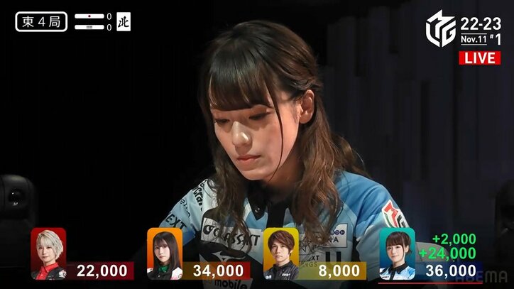 イケメン雀士も思わず「クラクラした」と即KO!美女雀士の強烈・倍満パンチが炸裂/麻雀・Mリーグ Mリーグ 2022/11/12 07:37 拡大する 滅多に聞くことがない点数申告、見事な「2万4000点」のパンチが決まった。プロ麻雀リーグ「大和証券Mリーグ2022-23」11月11日の第1試合。U-NEXT Pirates・瑞原明奈(最高位戦)がTEAM雷電・本田朋広(連盟)から親倍満をゲット。試合後に本田は「クラクラした」とぐったり、一方の瑞原はスマイル満開となった。【映像】親倍満2万4000点の“カウンターパンチ”が決まったシーン 場面は東4局、瑞原は4・7筒待ちのテンパイ。ドラの北が雀頭、高目の4筒なら一気通貫が付き、赤もある超勝負手だ。この局、まずはKONAMI麻雀格闘倶楽部・伊達朱里紗(連盟)がカン3索のリーチ、こちらはドラがないものの、234の三色同順が確定した満貫含みのチャンス手。続いて本田がドラの北と八万のシャンポンリーチで追っかけ。これを受けた瑞原、もうダマテンにしている意味はないと見てツモ切り追っかけリーチ、一気に場が沸騰した。 続きを読む