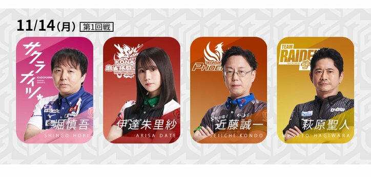 萩原聖人の麻雀はおもしろいんです!約1カ月ぶり登場、今期3戦目で初勝利なるか/麻雀・Mリーグ Mリーグ 2022/11/14 15:08 拡大する Mリーグ機構は「大和証券Mリーグ2022-23」11月14日の第1試合に出場する4選手を発表した。注目は10月18日以来、約1カ月ぶりの出場となるTEAM雷電・萩原聖人(連盟)。俳優としても多忙な日々を送る中、今期3戦目で待望の初勝利なるか。【中継】大和証券 Mリーグ サクラナイツvs麻雀格闘倶楽部vsフェニックスvs雷電 Mリーガーと俳優、萩原いわく「二足の革靴」を履いた生活も、もう今年で5年目を迎えている。本人も節目としているシーズンだが、チームメイトの3人が奮闘しチームはリーグ3位と上々の位置にいる。ここで萩原が初勝利を挙げて2位浮上となれば、いよいよ今年の雷電の麻雀がさらにおもしろくなる。 続きを読む