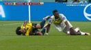 問題のシーンは18分、ロングパスをセネガル代表FWサールが足元で収めようとしたところを狙ってエクアドル代表DFプレシアードはボール奪取を狙った。ボールを奪われてからのカウンターを嫌がったサールは思わず手を使ったファウルを犯すと、これがプロレスラーの武藤敬司のドラゴンスクリューを彷彿とさせる投げ技のようになり、腰から落下したプレシアードはなかなか起き上がることができなかった。