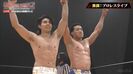 試合相手は、DDTプロレスリングの大石真翔と遠藤哲哉。関口はドラマでライバル“ハオウ”として共演した武知海青と共闘することに。時間無制限一本勝負の始まりは、ゴングを待たずに、DDT側の奇襲の形でいきなりスタート。次々に技を仕掛けられる関口たちだったが、関口&武知がダブルドロップキックをかましたりなど、負けじと大きな技を決め返していく。解説の高木も「すごい身体能力ですね…」と、あまりの迫力に言葉を失う展開に。