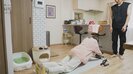 久保田から「腹筋ローラーできる?」と聞かれると「やったことない」と貴島。久保田が「やってみて」と腹筋ローラーに挑戦することを勧めると、貴島は素直にヨガマットの上に。ローラーを前方に転がしながら、体をゆっくり伸ばしていく貴島。久保田が「戻って!」と起き上がることを促すも、ぱたりとヨガマットの上に倒れてしまい「見た目より辛い」と朝から夫婦で笑いあった。