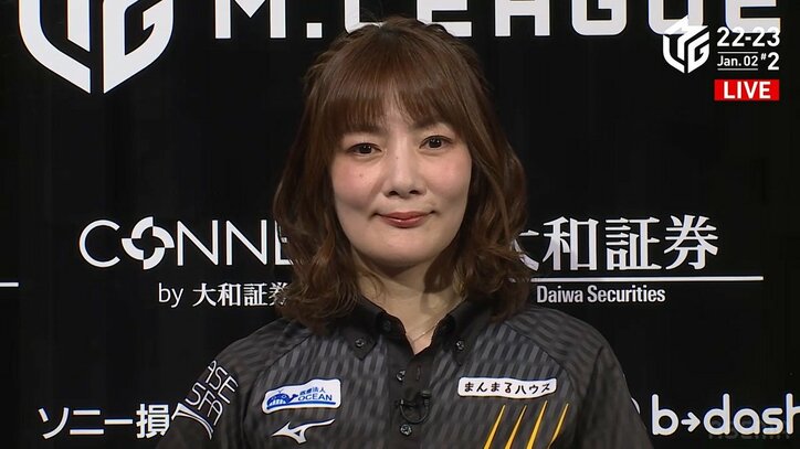 “鳴かず”が私の生きる道 黒沢咲「これが運命。自分の麻雀を貫いた」新年に信念のトップがかっこいい/麻雀・Mリーグ Mリーグ 2023/01/03 08:39 拡大する 結果に囚われるより、自分の打ち方を貫くことが大事。プロ麻雀リーグ「大和証券Mリーグ2022-23」1月2日の第2試合はTEAM雷電・黒沢咲(連盟)が持ち前の超高打点麻雀でトップ。新年の初試合で信念のある戦いぶりを展開、その内容はファンを熱狂させた。【映像】黒沢咲、会心の倍満ツモ 試合は起家からセガサミーフェニックス・東城りお(連盟)、赤坂ドリブンズ・村上淳(最高位戦)、EX風林火山・松ヶ瀬隆弥(RMU)、黒沢の並びでスタート。第1試合では瀬戸熊直樹(連盟)がオーラスに悔しい逆転負けを喫しており、黒沢には新年初トップの期待がかかる。 続きを読む