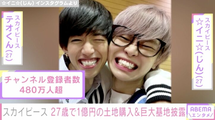 チャンネル登録者数480万人を超える2人組YouTuber・スカイピースが16日、1億円の土地を購入し、そこに巨大基地を建てたことを明かした。