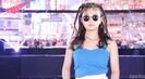 TYRAはオレンジのロングスカートにリンガーショートTシャツを合わせて健康的に肌出し。足元はプラットフォームシューズ、頭にはニット帽をかぶり、小物使いにもこだわった。