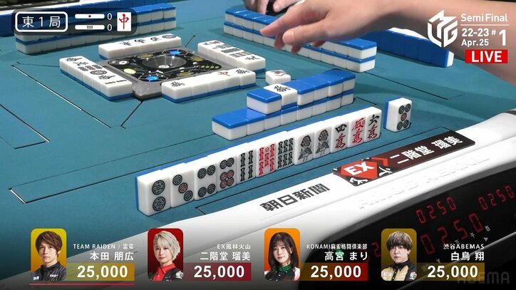 気持ちよすぎる三面張リーチから一発アガリ 美女雀士が我慢できないウキウキ顔「ニッコニコ」「瑠美スマイル」/麻雀・Mリーグ Mリーグ 2023/04/26 08:07 拡大する この上ない先制攻撃に、思わず顔がほころんだ。EX風林火山の二階堂瑠美(連盟)が、その純真無垢な表情でファンを喜ばせた。4月25日、プロ麻雀リーグ「朝日新聞Mリーグ2022-23」セミファイナルシリーズ10日目の第1試合でのことだった。起家からTEAM雷電・本田朋広(連盟)、瑠美、KONAMI麻雀格闘倶楽部・高宮まり(連盟)、渋谷ABEMAS・白鳥翔(連盟)の並びで始まった当試合、瑠美は東1局から配牌に恵まれた。 続きを読む