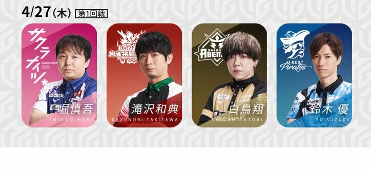 ボーダーラインを挟んだ3位から6位までの直接対決 突き放すか、大混戦か/麻雀・Mリーグ Mリーグ 2023/04/27 15:06 拡大する Mリーグ機構は「朝日新聞Mリーグ2022-23」セミファイナルシリーズの開幕となる4月27日の第1試合に出場する4選手を発表した。今回はリーグ3位から6位までの4チームがボーダーラインを挟んで激突。3・4位チームは突き放したい、5・6位チームは混戦に巻き込みたいという、思惑が交錯する直接対決だ。【中継】朝日新聞 Mリーグ サクラナイツvs麻雀格闘倶楽部vsアベマズvsPirates 3位のKONAMI麻雀格闘倶楽部は、セミファイナル開始時に持ち越していたポイントを大きく減らしてしまった。やはりチーム数が減り直接対決が増えるポストシーズンは簡単ではない。むしろ苦しい状況もレギュラーシーズンの貯金で耐えられている。大きなラスを引けば、いよいよ後続に足を掴まれる重圧もある中、滝沢和典(連盟)が個人連勝を狙う。 続きを読む