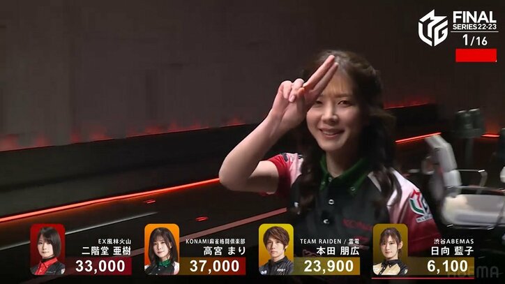 何度でも見たいこの笑顔!美人雀士のちら見せ決めポーズが圧倒的かわいさ「きゃわ~!!!」/麻雀・Mリーグ Mリーグ 2023/05/09 08:44 拡大する 去り際に“ちらっと”決めポーズ、ファンが沸かないはずがない。プロ麻雀リーグ「朝日新聞Mリーグ2022-23」ファイナルシリーズ、5月8日の第1試合終了後、勝利者となったKONAMI麻雀格闘倶楽部・高宮まり(連盟)がインタビューより一足先にファンへ“がらくたポーズ”を披露、これに視聴者から大きな反響が寄せられた。【映像】高宮まり、ちらっと決めポーズ 跳満一撃でトップを取り、見事にチームの初戦起用の期待に応えた高宮。対局スタジオの去り際にカメラ目線でちらっと“がらくたポーズ”、さらにちょこんとお辞儀をした。この可愛らしいアクションにファンはメロメロ。「きゃわ~!!!」「めっちゃ嬉しそうw」「可愛すぎるまりしゃん」「高宮キラってるー♪」とコメントが立て続いた。 続きを読む