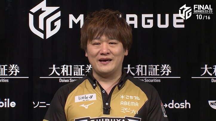 見据えたシャーレはもう逃さない 多井隆晴、渾身トップで初Vロード加速「青春してます!」/麻雀・Mリーグ Mリーグ 2023/05/16 07:43 拡大する ただの1勝ではない、もう初Vへのカウントダウンが始まっている。プロ麻雀リーグ「朝日新聞Mリーグ2022-23」ファイナルシリーズ、5月15日の第2試合は渋谷ABEMAS・多井隆晴(RMU)がトップ。終盤はライバル3者が多井の順位を落とすために死に物狂い。それでも多井は持ち前の守備力を発揮し、渾身の勝利を手に入れた。【映像】首位キープのトップにホッとする多井隆晴 試合は起家からKONAMI麻雀格闘倶楽部・滝沢和典(連盟)、TEAM雷電・本田朋広(連盟)、EX風林火山・勝又健志(連盟)、多井の並びでスタート。多井は東場、2度のアガリで試合を優位に進める。東4局1本場は滝沢へ5200点(+300点)の放銃となるも、南1局はカン6索待ちのリーチをツモ、リーチ・ツモ・赤・裏ドラの8000点でライバルを突き放す。 続きを読む