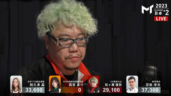 その差、わずか0.3ポイント!松ヶ瀬隆弥、逆転の2位通過はMリーガーの意地「優勝したいと思ってます!」/麻雀・Mトーナメント Mリーグ 2023/06/13 08:40 拡大する 最後のツモで逆転通過、劇的な幕切れだ。Mリーガー、各プロ団体推薦者が出場する「Mトーナメント2023」予選1stステージのB卓が6月12日に行われ、EX風林火山・松ヶ瀬隆弥(RMU)が2位通過を決めた。1位は忍田幸夫(麻将連合)。2位松ヶ瀬と3位和久津晶(連盟)の差はわずか0.3ポイント。トーナメント戦の面白さをABEMAの視聴者も最後まで楽しんだ。【映像】勝ち上がりを決める松ヶ瀬隆弥、渾身のツモ 続きを読む