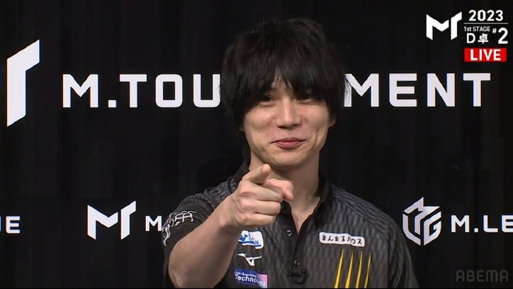 個人戦でも本田朋広の麻雀は「おもしーんです!」レジェンド相手に堂々の首位通過「勝ち上がりたい」/麻雀・Mトーナメント Mリーグ 2023/06/16 07:36 拡大する 相手が誰でも、自分の麻雀を信じて打ち抜くだけ。Mリーガー、各プロ団体推薦者が出場する「Mトーナメント2023」予選1stステージのD卓が6月15日に行われ、本田が2着・トップで首位通過。試合後は「おもしーんです!」と故郷・富山の言葉と共に決めポーズを披露した。【映像】照れながら「おもしーんです!」とポーズする本田朋広 第1試合は東家から関翔太郎(最高位戦)、岡田紗佳(KADOKAWAサクラナイツ・連盟)、本田、阿部孝則(RMU)の並びで開始。この試合は中盤に岡田が抜け出し、本田はそれに食らいつく形で2着フィニッシュ。好位置で第2試合を迎えた。 続きを読む
