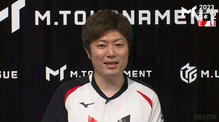 同い年ライバル、ロックオン!浅井裕介が2位通過で決勝Tへ「白鳥さんと打ちたい!」/麻雀・Mトーナメント Mリーグ 2023/07/07 09:16 拡大する 駆け上がった先に、倒したいライバルが待っている。Mリーガー、各プロ団体推薦者が出場する「Mトーナメント2023」予選2ndステージのC卓が7月6日に行われ、浅井裕介(最高位戦)が2位で決勝トーナメントへ進出を決めた。試合後のインタビューでは同い年でライバルの白鳥翔(渋谷ABEMAS・連盟)とのマッチアップを熱望した。【映像】白鳥翔に挑戦状を叩きつける浅井裕介 第1試合は東家から二階堂瑠美(EX風林火山・連盟)、浅井裕介、東城りお(セガサミーフェニックス・連盟)、竹内元太(最高位戦)の並びで開始。浅井裕介は東1局1本場にリーチ・一発・ツモ・平和・赤・ドラの1万2000点で先行するも中盤に瑠美、竹内にかわされて、オーラスは3着目。2つ仕掛けて4・7索でテンパイすると、同じく仕掛けてテンパイしていた竹内からロン、タンヤオ・赤・ドラの3900点で2着順アップ、見事な逆転トップを獲得した。 続きを読む