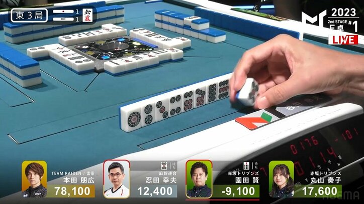 絶好牌をつまんでひょい♪達人レベルのベテラン雀士、軽いツモの仕草がおしゃれ&おもしろい/麻雀・Mトーナメント Mリーグ 2023/07/11 08:33 拡大する これも一つの熟練テクニック。Mリーガー、各プロ団体推薦者が出場する「Mトーナメント2023」予選2ndステージのF卓が7月10日に行われた。第1試合ではベテラン雀士の独創的な軽いツモ動作に「クセが強いw」「仕草がいいわ~」など視聴者の関心が寄せられた。【映像】忍田幸夫、軽やかな“ひょいツモ” 東3局1本場、ベテラン忍田幸夫(麻将連合)がカン5筒の一気通貫をテンパイしてリーチ。園田賢(赤坂ドリブンズ・最高位戦)の追っかけリーチとめくり合う間もなくこれをツモると、5筒を“ひょい”とつまんで軽やかにツモ。どことなくおしゃれで、ユニークでもあるツモ動作に解説の土田浩翔(最高位戦)は「今のツモリ方、見た!?」と大笑い。視聴者からも「つもり方ww」「独特だなあ」「くるりんぱ」「オシャレ」「かっこええ笑笑」と多数の反響が寄せられた。 続きを読む