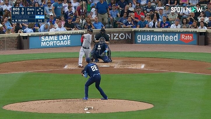 「どこまで飛んだ?」レッドソックス・主砲デバースの看板直撃特大アーチ!2打席連続アーチで大谷翔平を抜いて72打点、ア・リーグ単独2位に メジャーリーグベースボール 2023/07/15 11:22 拡大する 【MLB】カブスーレッドソックス(7月14日・日本時間15日/シカゴ) レッドソックス・吉田正尚外野手の同僚でボストンの顔でもあるデバースが、2打席連続のホームランでを放ち、エンゼルスの大谷翔平投手を抜いてアメリカン・リーグ打点ランキング2位に浮上した。【映像】吉田正尚の同僚デバース、大谷翔平超えの一発 3-0とレッドソックスが3点リードで迎えた3回表、2死走者なしの場面で「4番・サード」のデバースがこの試合2度目の打席に入った。第1打席で先制ホームランを放っていたデバースは、カウント1ストライクから投じられたインハイのフォーシームをフルスイング。打球はライトスタンドへ一直線で飛び込む2打席連続ホームランとなった。 続きを読む
