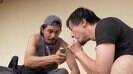 (ひろゆきに巻きタバコを作ってあげる東出)