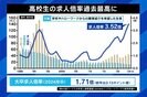「これだけ見ると高校生への期待が高くなっているように見えるが、単純に高校生の数が減り、就職者の数自体が少なくなっていることが大きい。1992年に3倍を超えた時は、就職する高校生が50万人いて就職率が33.1%あったが、去年は就職する高校生が約13万3000人で就職率が18%。この間減った高卒就職者36万人は、外国人が補完している。令和4年末で技能実習生が32万人、特定技能外国人が13万人、併せて55万人いる。高校生への期待が高い業種は、卸売業や小売業。いわゆる外国人が入ってこれない業界で、ガソリンスタンドや紳士服の販売店といったところが求人数を増やしている」