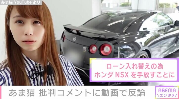 高級車所有の美人YouTuberあま猫、批判的なコメントに動画で反論「個人の自由だと思う」 ABEMAエンタメ 2023/09/26 14:43 拡大する フェラーリ488スパイダーなどの高級スポーツカーを所有する車系YouTuberのあま猫が、批判的な視聴者の声に反論した。【映像】あま猫所有の高級スポーツカー(複数カット) 22日に公開した動画で、憧れだったという「日産GT-R」 購入を報告したあま猫。しかし、ローンを入れ替えないと審査が通らないそうで、その結果、所有しているホンダNSXを手放すことになったという。23日には「さようなら、私の愛車ホンダNSX」という動画で、手放すことは苦渋の決断だったと語っている。 続きを読む