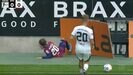 スコアレスで迎えた73分、ライプツィヒは左サイドからティモ・ヴェルナー浮き球のクロスをボックス内に送るも、これがサイドに流れる結果に。何とか先制点が欲しいアウェイチームは、シャビ・シモンズが懸命に走ってマイボールにしようと全力を尽くしたが間に合わなかった。その際に勢い余って看板に直撃した。