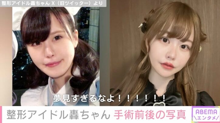 総額約1350万円の整形アイドル轟ちゃん、整形前後の写真公開で本音「クソ面長から普通の面長になれた」「このくらいが整形のリアル」 ABEMAエンタメ 2023/11/07 16:58 拡大する チャンネル登録者数60万人を超える人気YouTuber・整形アイドル轟ちゃんが、整形手術前後の写真を公開。「このくらいが整形のリアルです!!!!!!夢見すぎるなよ!!!!!!」と、率直な思いをつづっている。【映像】総額約1350万円 轟ちゃんの整形ビフォーアフター(横顔あり) これまでに鼻や額、輪郭などの整形手術を受けて、総額で1350万円ほど使ったと明かしている轟ちゃん。1月に更新したSNSでは10年前とのビフォーアフターを公開し「別人のようです!」「美しすぎる 轟ちゃんの努力の結果ですね!!!」などの声が寄せられていた。 続きを読む