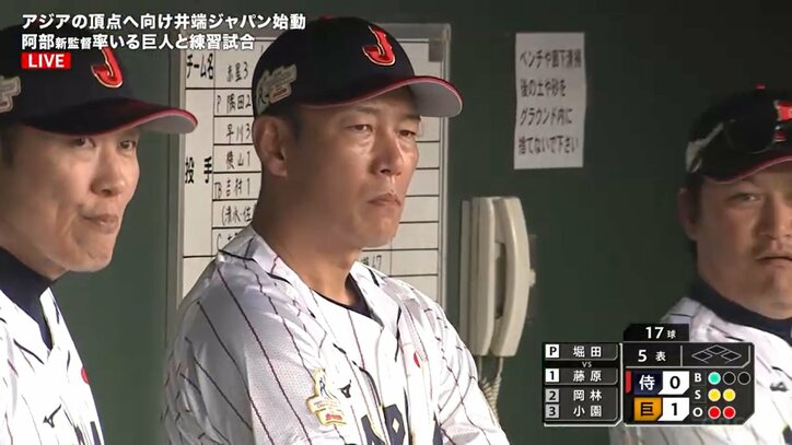 新生・侍ジャパン、井端弘和新監督の初陣は黒星 若手主体の巨人と練習試合で完封負け 2023/11/10 15:59 拡大する 【侍ジャパン練習試合】日本代表0-1巨人(11月10日/SOKKENスタジアム) 井端弘和新監督率いる新生・日本代表(侍ジャパン)にとって初の練習試合となったが、若手主体の巨人を相手に完封負け、井端監督の初陣は黒星となった。打者陣が1回、2回と単打を集めて5安打したものの得点の機会を逸すると、3回に先制点を許す展開に。その後もDeNA牧秀悟、日本ハム万波中正からあと1本が出ず、そのまま敗戦した。それでも投手陣は崩れることなく役割を果たすと、守備でも好プレーが出るなど、短い期間でのチームづくりでも成果を見せた。 続きを読む