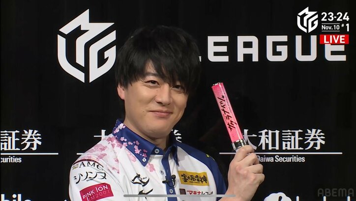 サクラのヒーローがついに見せた王子様スマイル! 内川幸太郎、カウンター連発で強豪撃破 今期初トップで「悪い流れを断ち切り」浮上誓う/麻雀・Mリーグ Mリーグ 2023/11/11 08:00 拡大する 試合後の笑顔は眩しかった。プロ麻雀リーグ「大和証券Mリーグ2023-24」11月10日の第1試合はKADOKAWAサクラナイツ・内川幸太郎(連盟)が今期初のトップを獲得。7日の試合ではまさかの連続ラスの不運に見舞われたが「これでいったん流れを断ち切って、さらに頑張る」と健闘を誓った。【映像】内川、勝利のアイテムで珍事 この試合は東家から内川、渋谷ABEMAS・松本吉弘(協会)、KONAMI麻雀格闘倶楽部・佐々木寿人(連盟)、BEAST Japanext・猿川真寿(連盟)の並びで開始。東1局、内川は仕掛けてテンパイを入れるが、松本がリーチでまさかの三倍満ツモ。内川は当たり牌を抑えたものの、1万2000点の親被りと苦しいスタートに。 続きを読む