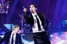 『Get A Guitar』のパフォーマンスを終えると、メンバーのチルな映像が流れ、「アントン可愛すぎ」「にっこにこでかわ」「タロかわええ〜」とステージとのギャップにファンは悶絶。今度はタキシードに着替え、中毒性の高い新曲『Talk Saxy』を披露した。メンバーは長い手脚がさらに際立つ衣装でダイナミックな動きを繰り出し、会場にいるファンを骨抜きに。ラップ、ダンス、歌声、表情と、どこを切り取ってもセクシーさがだだ漏れなパフォーマンスで会場を魅了した。