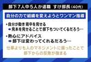 40代の管理職・すけ部長さんは、7人の部下のうち5人が一気に退職した経験がある。当時の状況について、「立て直しを命じられて異動した部署で、まだ27、28歳と若かったこともあり、人一倍ガツガツやっていたが、周りが冷めている感じだった。“お前らが当事者だろう”と感情的に叱ることもあり、だんだん部下から反発を食らうようになった。俺の背中を見ろというよりは、一人で勝手に突っ走って、振り向いたら誰もいなかった」と話す。