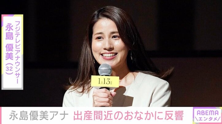 第1子妊娠中・永島優美アナ、出産間近のふっくらお腹に反響「すごーい大きさ」「双子ちゃんですか?」 ABEMAエンタメ 2023/12/11 12:08 拡大する 第1子を妊娠しているフジテレビの永島優美アナウンサー(32)が、出産間近の大きなお腹を披露。「すごーい大きさ、双子ちゃんですか?」「双子と思わせるくらいのお腹ですね」など、多くの反響が寄せられた。【映像】「すごーい大きさ」ふっくらお腹の永島優美アナ 2021年3月に、約3年半の交際を経て、フジテレビのディレクターと結婚した永島アナ。2023年7月に「この度、新しい命を授かりました。さらに賑やかになりそうですが、変わらず仕事も頑張ります」と、Instagramで第1子妊娠を報告していた。 続きを読む