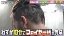 女性の名前はナツミさん(24歳)。ナツミさんは刈り上げるだけでなく、長さ60センチの髪の毛の内側をファイヤー柄にデザインしていくという。