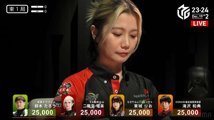 「似合っててたまげてる」「ビジュ爆発」美人姉妹の姉・二階堂瑠美、キュッとまとめた髪が大反響を呼ぶ/麻雀・Mリーグ Mリーグ 2023/12/20 21:00 拡大する 麻雀だけでなく、ビジュアルでも魅せるのが流儀。ここまで個人成績5位と好調なEX風林火山・二階堂瑠美(連盟)が12月19日、プロ麻雀リーグ「大和証券Mリーグ2023-24」の第2試合に出場して、その髪型でファンを魅了した。【映像】二階堂瑠美、かわいい&かっこいい“おまとめヘア” 当試合は起家から赤坂ドリブンズ・鈴木たろう(最高位戦)、瑠美、セガサミーフェニックス・東城りお(連盟)、KONAMI麻雀格闘倶楽部・滝沢和典(連盟)の並びでスタート。試合前、まずたろうが入場すると、瑠美は「11月は風林火山の先頭に立ち、天衣無縫の麻雀で大活躍」などと実況の松嶋桃(協会)が読み上げる中、カメラ目線でファンに一礼。この日はお馴染みの金髪ショートボブを後ろにキュッとまとめており、上品さと可愛らしさを併せ持った雰囲気には「あら、かわいい」「かわいいやん」「るみたんきゃわ」「お、髪カッコイイ」「気合い入った髪型」などと多くのファンが反応した。 続きを読む