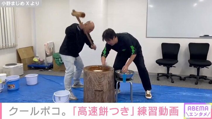 お笑いコンビ・クールポコ。 息の合った“高速餅つき”の練習風景を公開 「これよりもっと早くなるよう練習中だよ〜」 ABEMAエンタメ 2023/12/30 12:00 拡大する お笑いコンビ・クールポコ。の小野まじめ(46)が、高速餅つきを練習している動画を公開し、注目を集めている。【映像】“高速餅つき”を練習するクールポコ。 餅つきネタで人気を博し、2023年に再ブレイクしたコンビ結成23年のクールポコ。12月に登壇したイベントで小野は「忙しくやらせてもらった1年だった」と語り、相方のせんちゃん(46)は「ブレイクしました!」と振り返っており、2024年1月の営業件数は、コンビ史上最多となることを明かしていた。 続きを読む