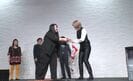 チャレンジしたのはオダウエダ・植田紫帆&小田結希。小田は唐突に「今から焼きごてやりますー!」と植田の腕に焼きごて(?)をプッシュ。植田はド根性で焼きごてに耐える顔を見せ、「あゆの焼きごてでした~!」と「A」モチーフを腕に貼り付けた“焼き印”を披露した。「エイベックスです、ありがとうございますー!」というなんともシュールすぎる危険なネタを披露。このネタで10人が笑い1000円をサポートした。