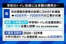 また100%にできない理由を「公立小中学校は全国に3万校、大便器の数は約133万個ある。洋式化には予算が必要だ。工期も人手もかかり、整備が老朽化などのスピードに追いつかないような状況だ」と説明した。実際に大阪府交野市の例では、2024~2032年度にかけて行う小中11校のトイレ全面改修(洋式化など)に約30億円かかるとされている。