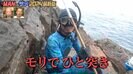 回遊するサメにタックルされるハプニングもありながら、ナスDは仕掛けに引っかかったサメを見つけると、素早くモリでひと突き。しっかりと急所のエラを刺し、暴れるサメの胸ビレを押さえ、岩に頭をぶつけて脳震盪を起こさせた。その後、ナスDは尾ビレをキャッチし、サメになんと海中でライドオン。この映像を見ていたバイきんぐは「乗ったよ!」と言いながら爆笑していた。