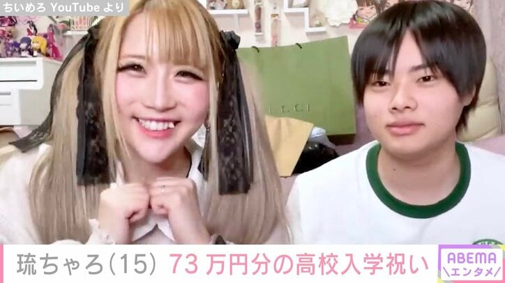 元“小学生ホスト”琉ちゃろ、グッチやディーゼルなど…73万円分の高校入学祝いを母親・ちいめろがプレゼント ABEMAエンタメ 2024/04/12 17:13 拡大する チャンネル登録者数が78万人超えのYouTuber・ちいめろが、“小学生ホスト”として話題になった息子の琉ちゃろ(15)に、総額73万円の高校入学祝いをプレゼントしたことを報告した。【映像】琉ちゃろの総額73万円の入学祝い(複数カット) ちいめろは、琉ちゃろを金髪とスーツに身を包んだ“小学生ホスト”としてプロデュース。その写真をSNSに投稿し話題を集めた。シングルマザーとなった現在は、琉ちゃろ、長女のまひめろ(13)、婚約者のあきたんが登場する動画をYouTubeに投稿している。 続きを読む