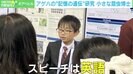 アメリカ生まれの丈くん。スピーチは英語で行った。これまでも研究で数多くの賞を受賞し、家にはもらった賞状や盾がずらりと並ぶ。