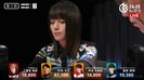 緊迫した状況にも関わらず、穏やかな手つきで牌をツモる瑞原。ほどなく6索をツモり、リーチ・ツモ・平和・赤・ドラ2の1万2000点(+600点)の大量加点に成功した。