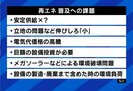 現在、年末に向けて議論を呼んでいるエネルギー政策。政府は2040年度の発電量における再生可能エネルギーの割合を、これまでで最大にする方針で調整に入っている。その割合は4~5割程度。2023年度は22.9%で、2倍程度にまで引き上げるという目標だ。この目標設定に対してはSNSで賛否両論が飛び交うことに。「目標が低すぎる。政府にやる気はあるのか」という声が上がり、先進国として責任ある温室効果ガス排出削減を求める署名活動も始まっている。