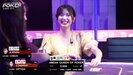 妙技が炸裂したのは予選第1試合。序盤から積極的なゲーム参加をみせ、ここでもハートの「AQ」スートの好ハンドで2Kをベットしレイズした“ラスベガス在住プレーヤー”Sashimiと、こちらもチップリーダーとしてゲームを引っ張るあざとポーカー女子・谷口彩菜が、ダイヤの「K」、クラブの「9」の好ハンドでコールした場面だった。