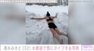 俳優の清水みさと(32)が24日、Instagramを更新。水着姿で雪にダイブする写真を公開した。