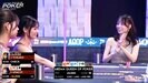 試合は終盤、海外から参戦のプロ・ちょめがチップリーダー。それに続いて羽田千夏、廣井佑果子、あおといった並び。この場面ではハートの「A」とスペードの「7」を持つ羽田が、8Kのチップを出して参戦。スペードとハートの「4」ポケットを手にした廣井も、これに合わせてチップを差し出した。