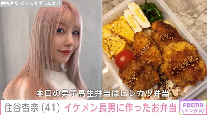 イケメン長男(16)の顔出しが話題!HGの妻・住谷杏奈(41)、長男のために作ったボリューム満点の「男子高生弁当」披露 ABEMAエンタメ 2025/01/08 17:30 拡大する お笑いコンビ「レイザーラモン」のHGの妻でタレントの住谷杏奈(41)が8日、Instagramのストーリーズを更新。イケメンと話題になっている長男に作った、「男子高生弁当」の最新作を公開した。 2006年にHGと結婚し、16歳の長男、13歳の長女を育てている住谷。 2024年7月24日に更新したInstagramでは、16歳になった長男の、初の顔出しショットを公開。2025年1月6日には、子ども2人とタイ旅行に行っている写真を投稿した。 続きを読む